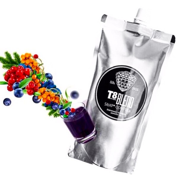 T8 BLEND можно смело назвать коктейлем молодости, поскольку он усиливает выработку энергии, накапливает ее, а также насыщает организм комплексом минералов и витаминов. Так в его состав входит сок шести живых таежных ягод: