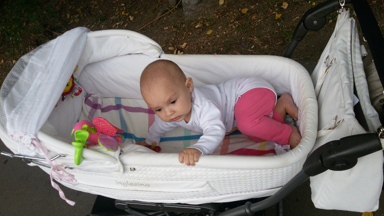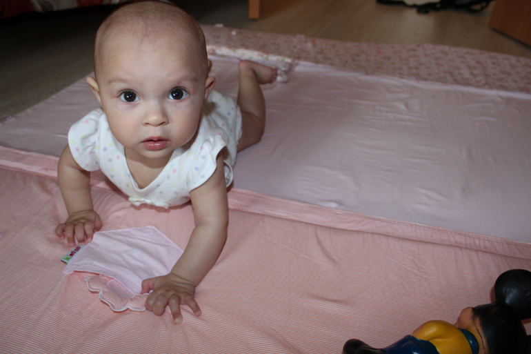 Катастрофически быстро развивается. Вот все буквально за неделю. Сама села (правда нужно за что то держаться). Вчера слышу проснулась днем, захожу - а она стоит!!!!! А сегодня так вообще встала, я ей руки свои даю, чтоб она держалась, и она сделала несколько шагов.