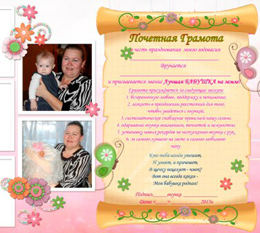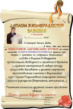 Крестным вручила дипломы. (редактировала в фотошопе и печтала на папирусной бумаге)