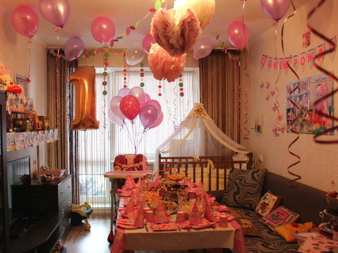 Всё, за исключением шаров и торта, я делала своими руками. А это: растяжка "С Днем Рождения", гирлянды, которые висели от люстры в 4 стороны и на шторах; бабочки на стенах; все плакаты (их я делала в фотошопе и печатала в типографии).