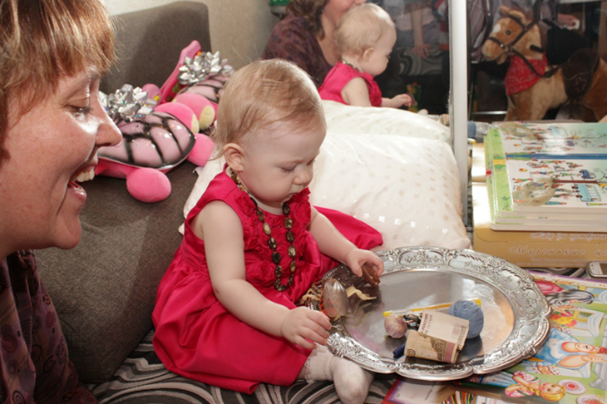 Вела она себя очень хорошо, быстро адаптировалась к огромному кол-ву гостей, весь праздник веселилась и развлекалась! А гостей у нас в квартире было: 11 взрослых, 2 подростков (мои племянники) и 4 детей - 1 год, двое по 3 года и один 7 лет.