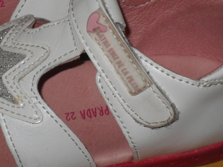 2. Туфельки Agata ruiz de la Prada, 22 размер, по стельке 13,5 см., состояние на фото. носили мало, но мысочки успела доченька сбить, легко убрать кремом д/обуви, внутренняя стелька в идеале. 1000 руб.