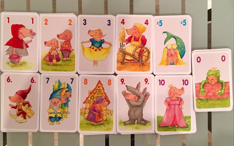 Цель игры - собрать самое большое число карт. Участники по очереди выкладывают на стол карточки с цифрами. Числа на карточках суммируются. Задача участников добавить к картам на столе такую цифру, чтобы сумма цифр составила ровно 10 очков. Стоит только получить хоть на единицу больше 10, как все карточки сразу же получает соперник. А если появится свинка-лягушка, то все цифры вообще превратятся в ноль! А ещё в ваши руки может приплыть свинка-русалка с цифрой 5, которая умеет не только прибавлять, но вычитать числа. Zoch мне вообще нравится, все игры классные, по крайней мере, которые есть у нас(Сырный замок, Барабашка, Барбарон).