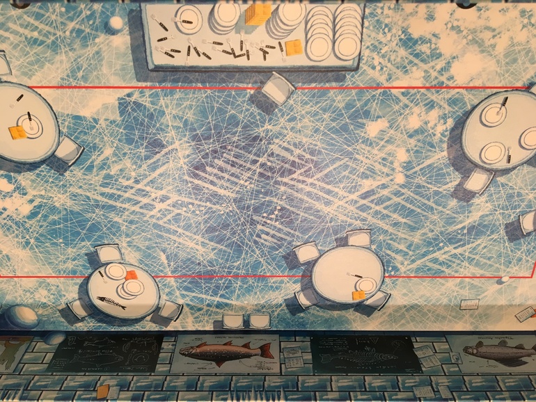 В этой игре не сидишь за столом, а постоянно перемещаешься, чтобы было удобно целиться пингвинами. Фигурки пингвинов из настольной игры Айс-класс похожи на неваляшек - с помощью хорошего щелчка их можно отправить в головокружительное путешествие по комнатам (правда, не факт, что они попадут именно туда, куда вы их отправите). Нарезая круги по школе, остерегайтесь столкновения с дежурным - он сразу отберёт школьный пропуск и вы останетесь без вкусной добавки. Но и сидеть на месте противопоказано - рыбу придётся доставать, пробегая через дверные проёмы между классами.