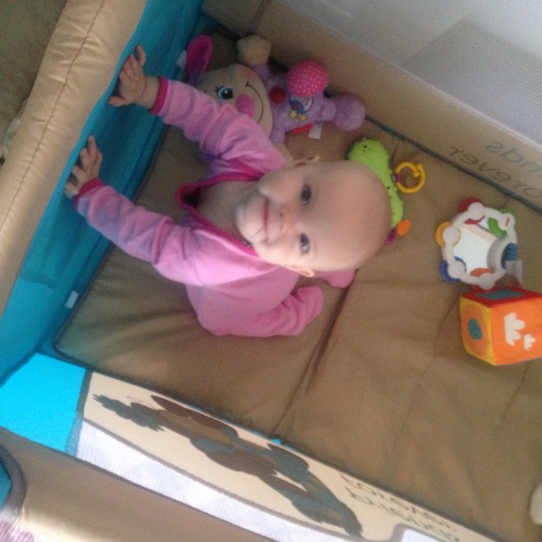 Вы спросите, где ребёнок? А ребёнок играет в манеже. Папа её подмыл, переодел и погрузил))