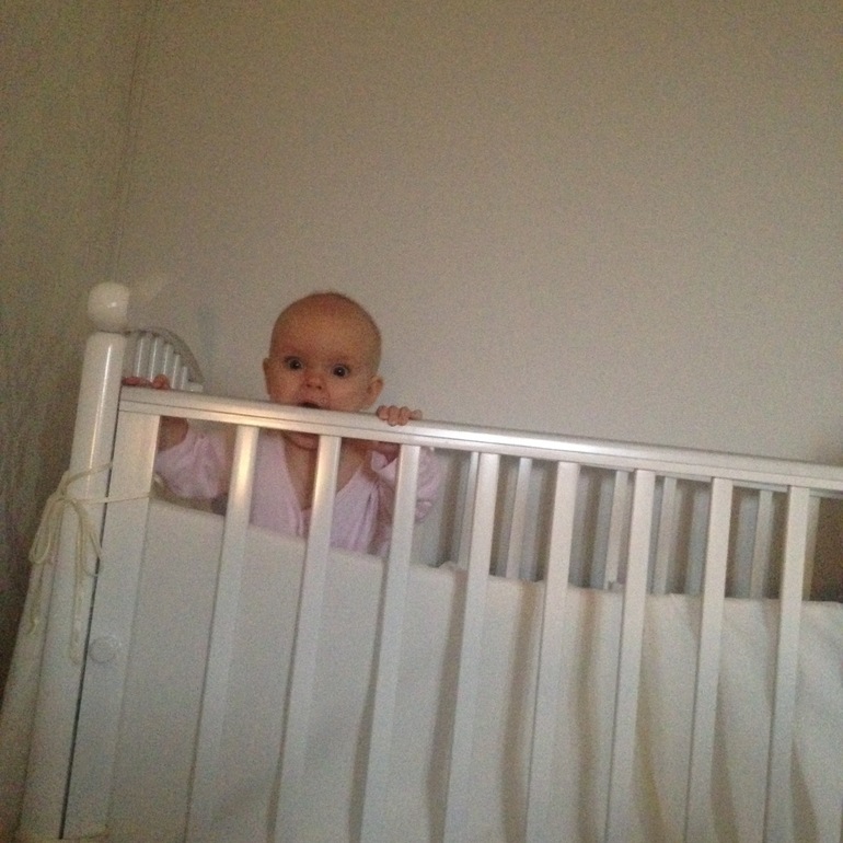 Офигеть, и в кроватке постояла одна, и в манеже поиграла, и в шезлонге посидела! Нам для всего нужна мама: чтобы подтолкнула повыше, на турнике дала повисеть, из манежа вынула (не видать ниче!). А если тихо, то как в тупом анекдоте -- значит, уже лезет по комоду вверх и скоро навернется или нашел клей-карандаш и готов полакомиться