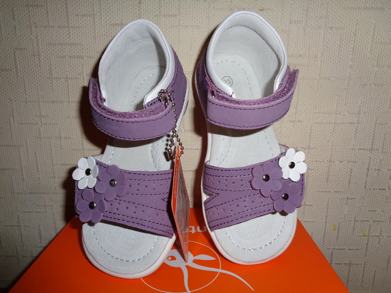 Сандалии для девочки. Материал верха - натуральная кожа (нубук), внутренний материал - натуральная кожа. Стелька с супинатором.