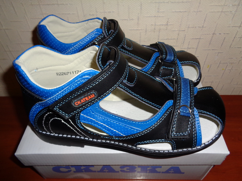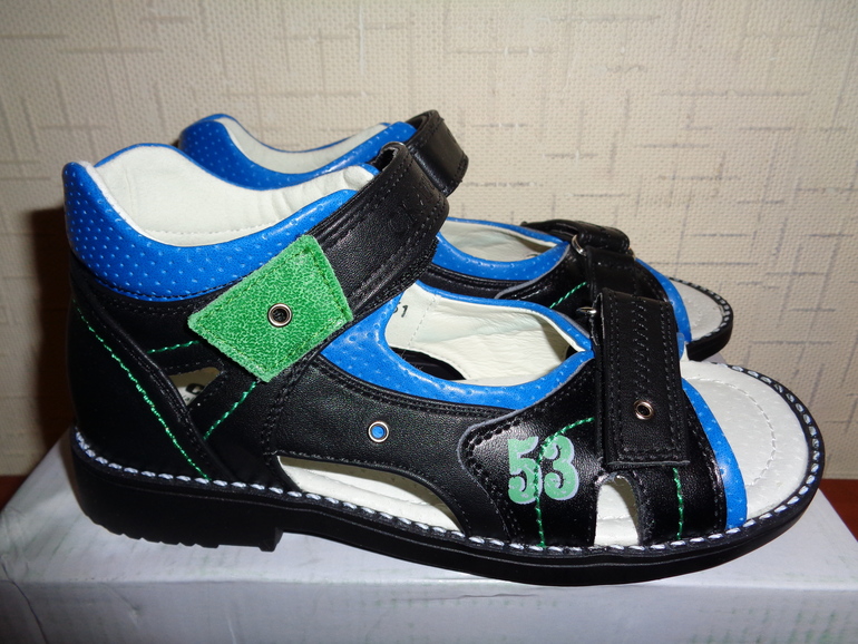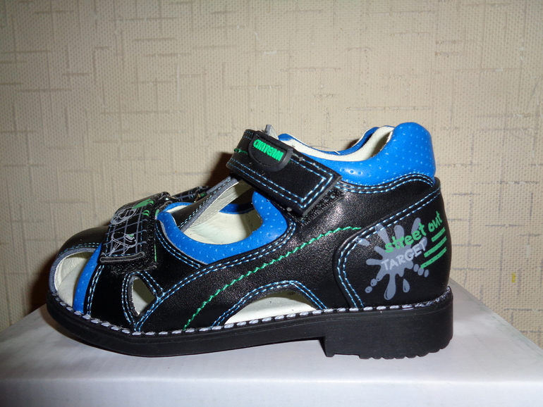 Сандалии Сказка для мальчика. Материал верха - комбинированная кожа, внутренний материал - натуральная кожа. Супинатор, каблук Томаса.