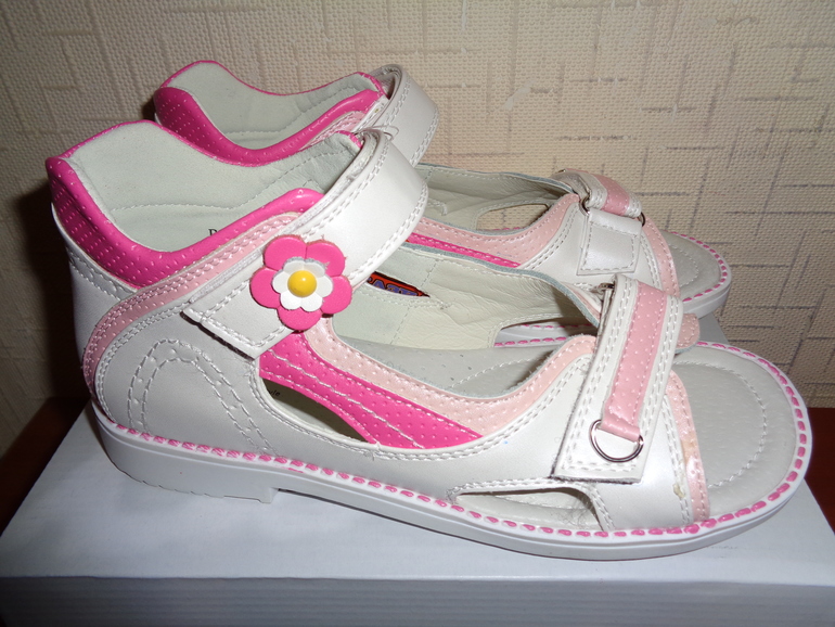 Сандалии для девочки. Материал верха - комбинированная кожа (натуральная+искусственная), внутренний материал - натуральная кожа. Стелька - натуральная кожа, с супинатором.