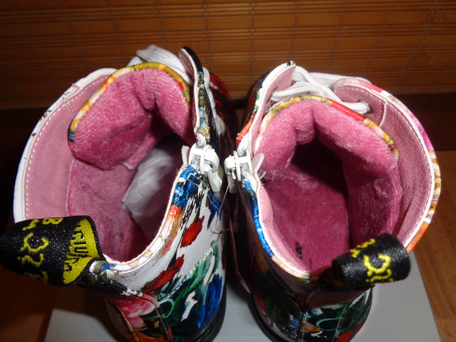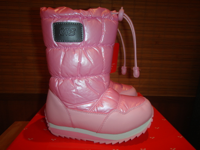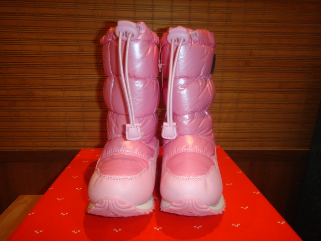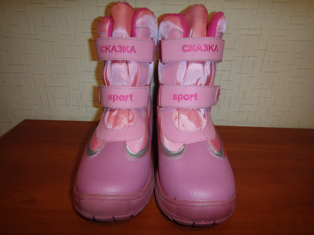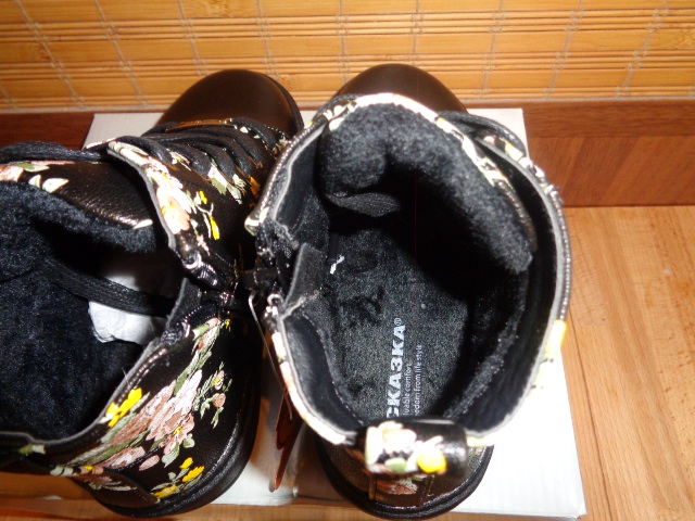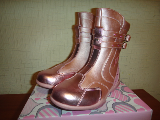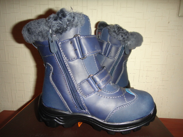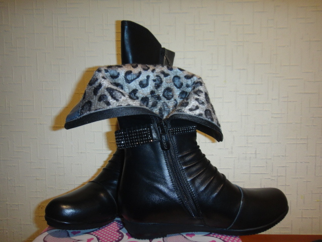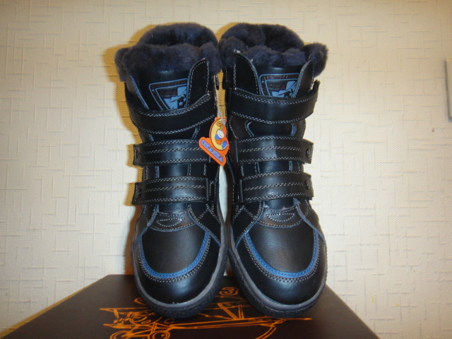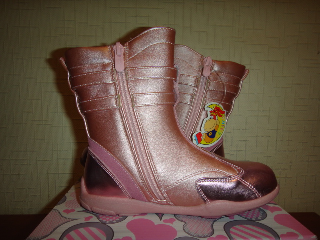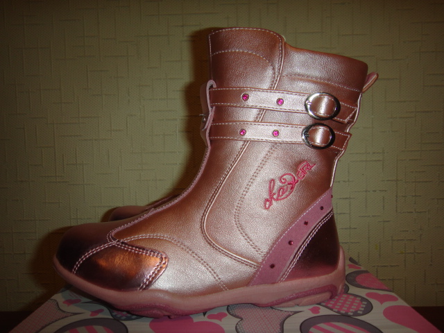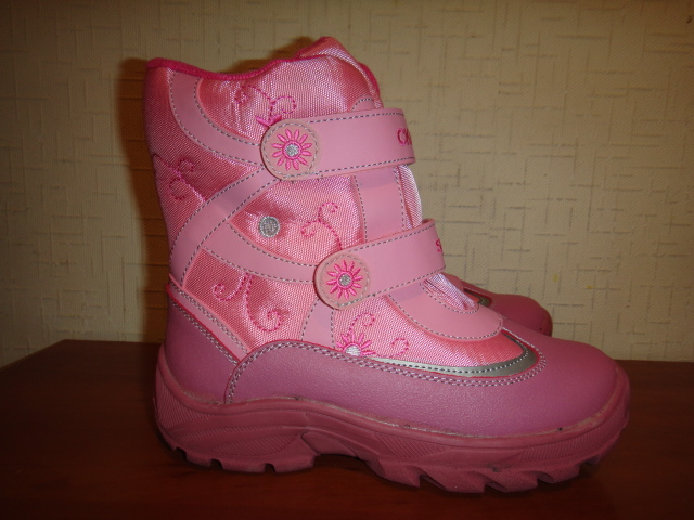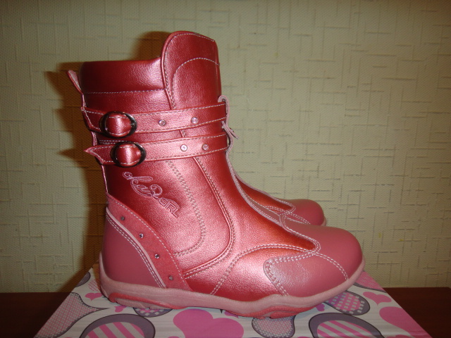 Ботинки зимние для девочки. Материал верха - водонепроницаемая кожа и текстиль, внутренний материал - натуральная шерсть. Стелька тоже шерстяная, с супинатором. Ботинки большемерят, смотрите внимательно замеры стельки.