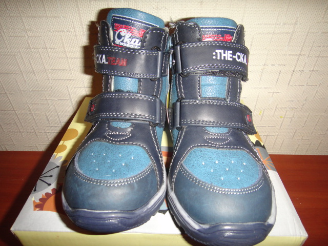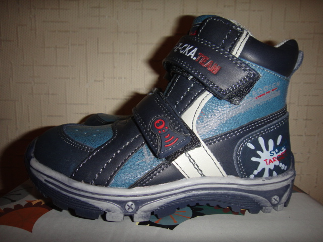 Ботинки демисезонные для мальчика. Материал верха - комбинированная кожа, подкладка - флис. Стелька с супинатором. На липучках и молнии.