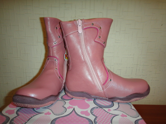 Сапожки для девочки. Сезон весна-осень. Материал верха - натуральная кожа+искусственная кожа. Подкладка - ворсин. На молнии. Стелька с супинатором.