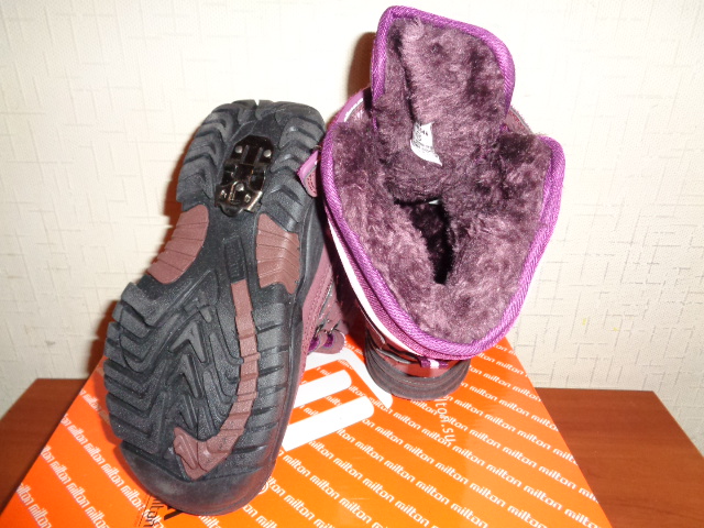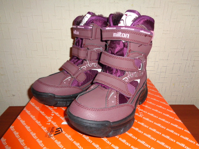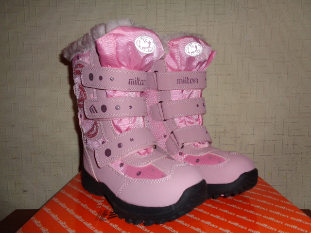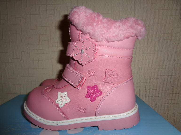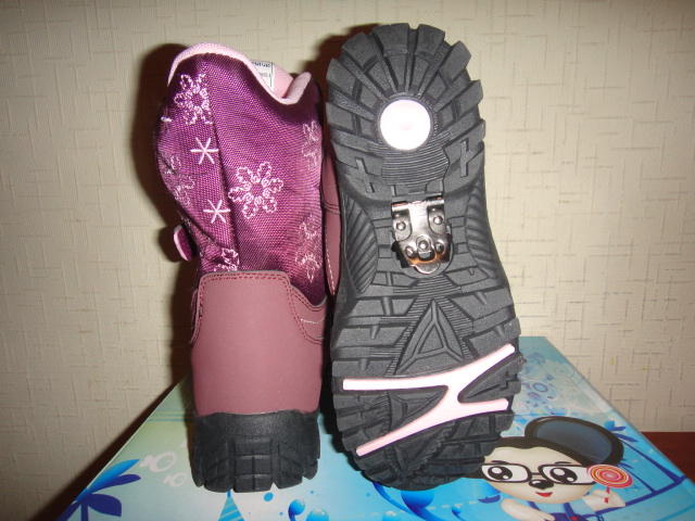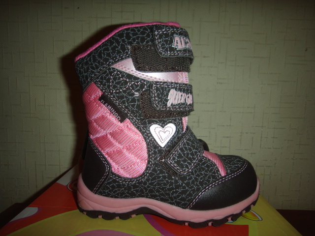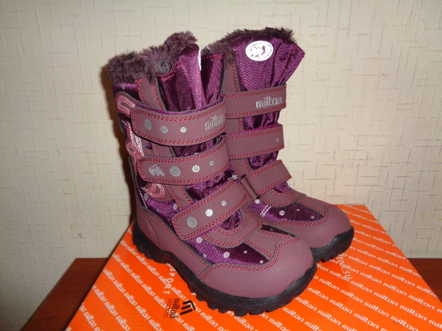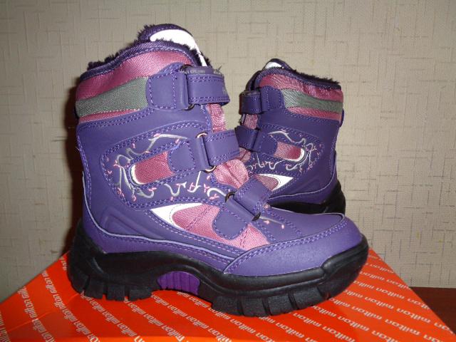 Ботинки зимние мембранные для девочки. Материал верха - искусственная кожа+водонепроницаемый текстиль, внутренний материал - фельпа, натуральная шерсть. Температурный режим до -15 градусов.