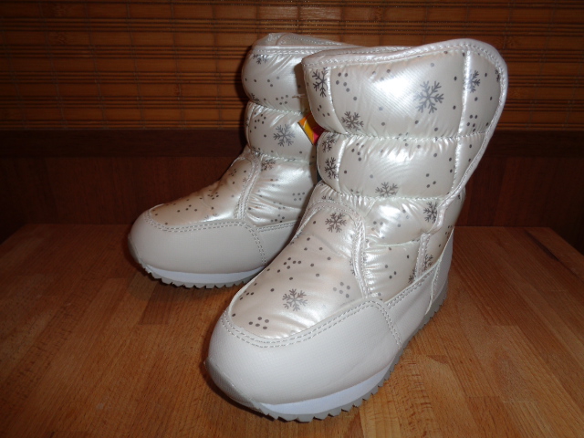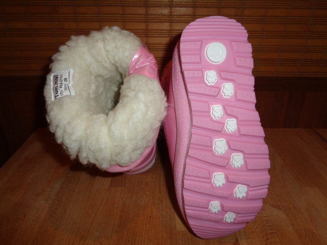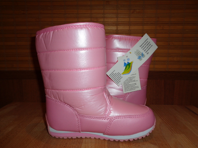 Сапожки зимние мембранные для девочки. Материал верха - искусственная кожа + нейлон, внутренний материал - искусственный мех на хлопковой основе.