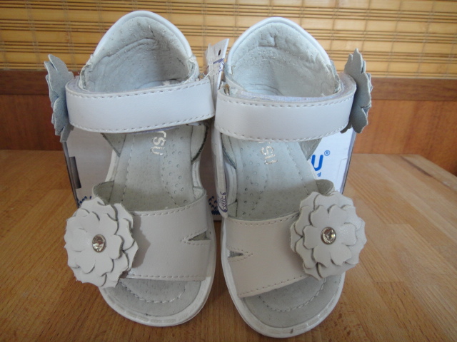 Босоножки для девочки. Материал верха - искусственная кожа+натуральная кожа, внутренний материал - натуральная кожа. Стелька с супинатором. Три липучки.