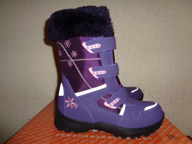 Сапожки для девочки, зима, мембрана. Материал верха - искусственная кожа+текстиль, внутренний материал - шерсть. Температурный режим до - 15 градусов.