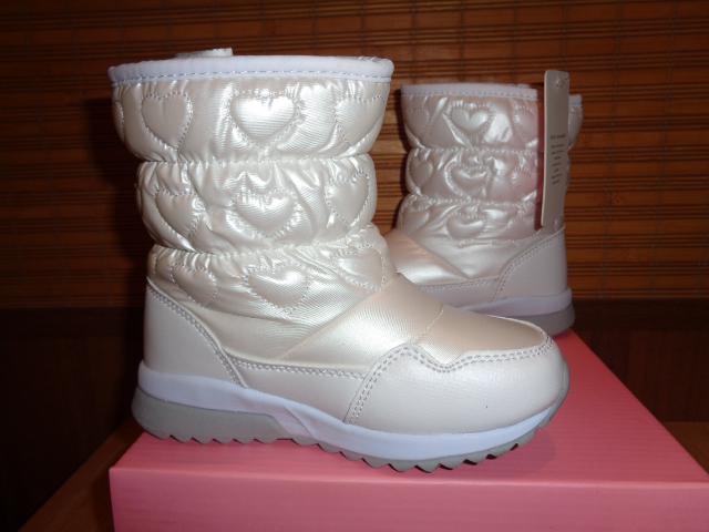 Сапожки зимние мембранные для девочки. Материал верха - искусственная кожа+нейлон, внутренний материал - искусственный мех на хлопковой основе.