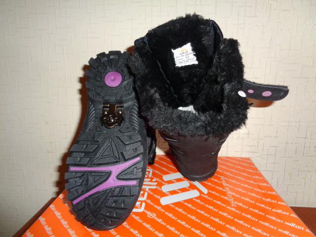 Ботинки зимние мембранные для девочки. Материал верха - искусственная кожа + водонепроницаемый текстиль, внутренний материал - искусственный мех на хлопковой основе. Температурный режим до -20 градусов.