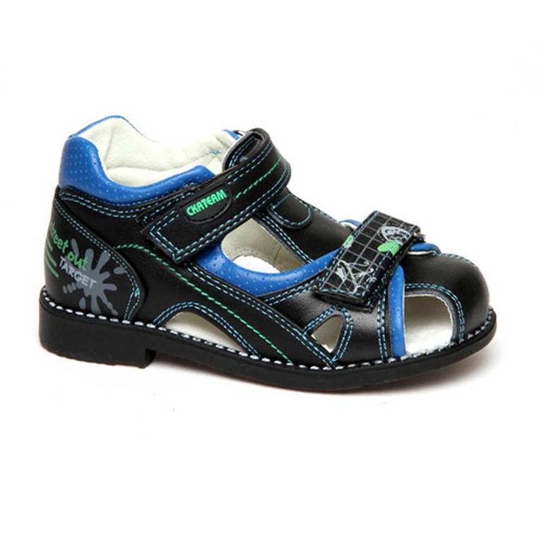 Сандалии Сказка для мальчика. Материал верха - комбинированная кожа, внутренний материал - натуральная кожа. Стелька с супинатором, каблук Томаса.