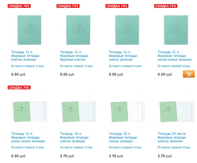 Вдруг кто пропустил - в Детском мире тетради 12л по 50 коп. Есть практически во всех магазинах, но можно для надежности оформить заказ на самовывоз. Ссылка