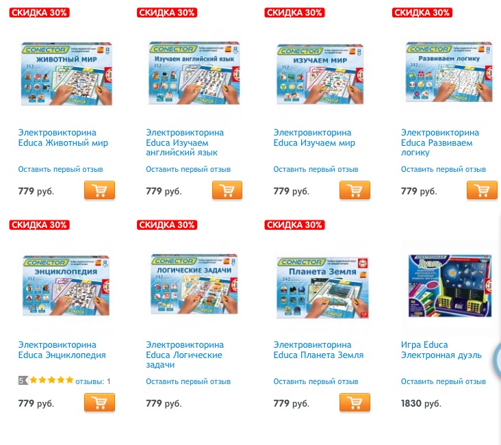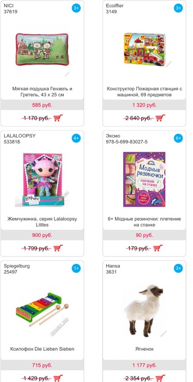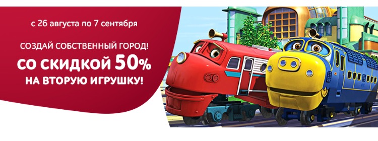 -50% на вторую игрушку из раздела. Действительно вторую. Но цены лучше проверяйте до оформления заказа. http://www.eldorado.ru/promo/prm-sozdaj-sobstvennyj-gorod/