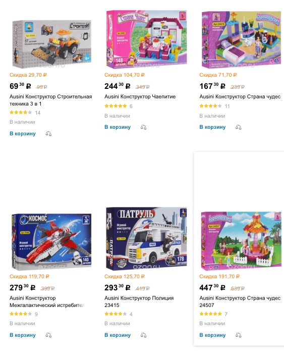 скидки на Ausini (аналог Лего) 30-50%. http://www.ozon.ru/action/137453572/