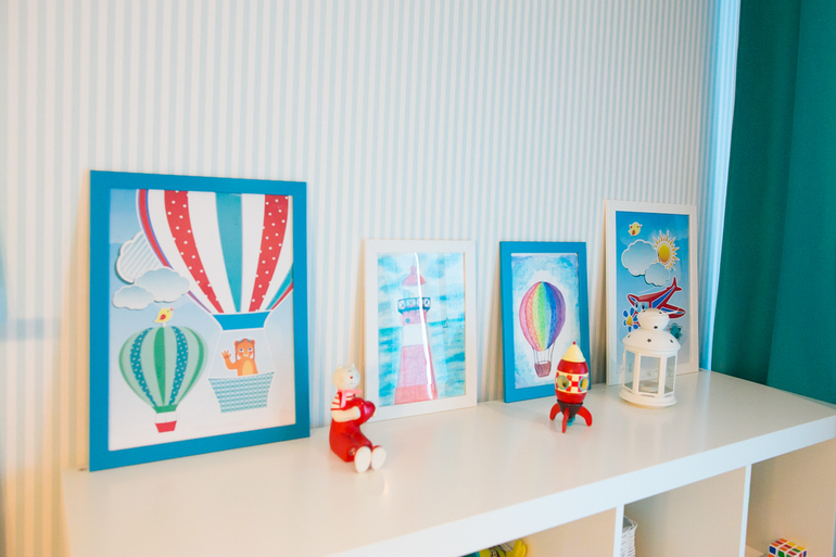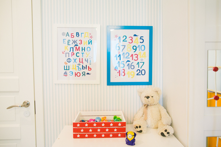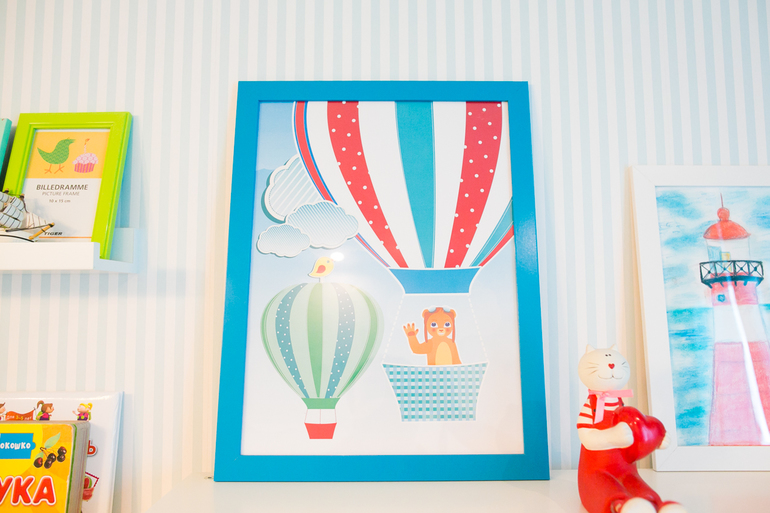 Оставалось дополнить наш интерьер красивыми постерами. У нас их много, и мы их периодически меняем. Есть постеры с алфавитом и цифрами, есть просто яркие картинки в любимой воздушно-самолетиковой теме. Кое-что рисуем с сыном сами, каранадшами, и торжественно помещаем в рамку)