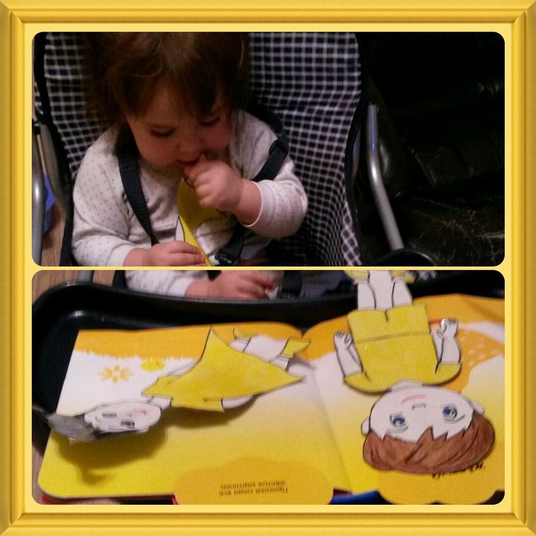 После завтрака, наши ЖЕЛТЫЕ друзья принесли Лизоньке журнал с наклейками, ребенок распределил всё так как надо=))))все цыплятки были рядом с мамой курицей