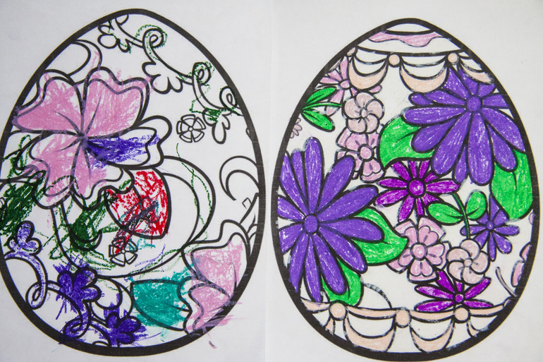 Некоторые гигантские яйца мы использовали как раскраски, сразу видно кто где раскрашивал..