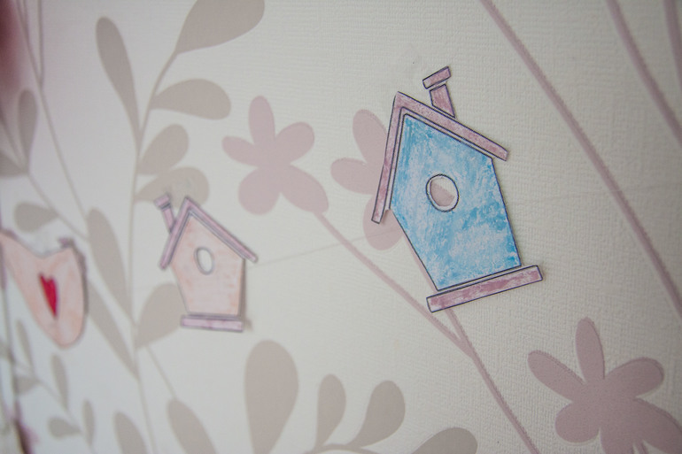Курочку и скворечники тоже раскрасила и приклеила на кухне.