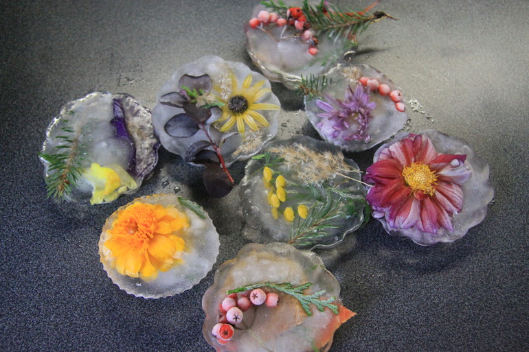 Гуляли, гуляли, собирали всякие разности в ведро, а потом решили поробовать все это дело заморозить и вышло это ....
