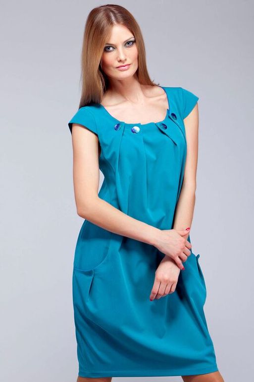 Платье в состоянии "новое". Одето один раз только на выписку из роддома. Элегантное платье выполнено из тонкой костюмной ткани, силуэт "тюльпан" слегка зауженный книзу. Декоративные складки по горловине декорированы крупными пуговицами из натурального перламутра в тон платью. Обтачка карманов на бёдрах и обтачка горловины выполнены из ткани-компаньона контрастного цвета. Платье удачно смотрится во время беременности и отлично маскирует недостатки фигуры после родов, не придавая ей излишнего объёма.