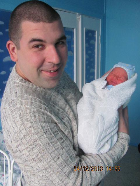 В 0.20 ночи 20.12 я проснулась от того что хочется в туалет, как только я встала с меня потекло я спросоня не поняла почему так много и я не могу стерпеть что бы дойти в туалет 3 метра. Потом был такой звук как вода из банки льется. Пакеты с вещами для родов я не брала пришлось полотенце скрутить и идти звать медсестру. Она посмотрела на пол и сказала что бы я собиралась на четвертый этаж, а вещи дома. Я не могла дозвониться мужу т.к. небыло связи попросила у медсестры её телефон. На четвертом этаже мене передали вещи из дома, я все разложила. Медсестра сказала что когда между схваткамт будет 5 минут позовеш. Где то посте трех ночи боли усилились было удобно их терпеть на специальном стуле с дыркой возле шведской стенки. Я то сидела отдыхала то придерживалась за лесенку. Сказали что лучше лежать, но я не могла, пришла медсестра спросила сколько минут схватки были я ответила что минут через пять-семь. Ты почуствуешь как будет сильно распирать, зови. Я слышала что еще одна девченка за стеной родила и уже отдыхает, к другой муж на роды пришел. Когда я почувствовала что уже ребенок близько я закричала пришла медсестра и доктор. Сказали что давай помагай, тужся, я во время первых родов себя вела похуже, терпела, а тут все делала что говорили. В 6.30 родился Егорка, положили сразу на живот, а потом приложили к груди так мы отдыхали два часа. Пришла детская медсестра обмеряли 53 см, взвесили 3250,одели Егора, дали мене и повезли нас в палату где мы пробыли три дня. Егорушка почти не плакал не то что старший десять лет назад. Я все боялась что бы он не замерз в полате показалось прохладно было муж привез обогреватель. Вот так наш Егор родился на две недели раньше на День милиции, и Новый год мы уже отмечали все вместе, я переживала что рожу в Новогодние праздники.
