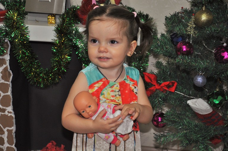 С этими простудами и не попишешь) Сафине уже 22 месяца, время только разгоняется. Как так? Уже все совсем поменялось. Только вчера она постоянно просилась на руки и хотела постоянного внимания, а сегодня она уже играет сама в другой комнате, таскает свою мебель по всей квартире, разливает "чай" в игрушечную посудку, требует именно докторский набор или именно книжку про Дюймовочку. Все еще маленький пупс в фаворитах, но появились и другие любимые игрушки. Все еще любит книги, но и краски-карандаши и пластилин - наши друзья. Ласковая, добрая, сто раз на дню скажет люблю и поцелует. Обязательно и папу тоже, если он рядом. Всем поровну. Любит танцевать почти освоила два детских танца. Напевает песню Джонни,Джонни папапа) Как-то спела на весь автобус))) Было стыдно и смешно одновременно) Цвета выучили, но бывают промахи. Зато теперь во все тыкает и называет цвет. Красный - фаворит. Изначально все у нас "было" красным. Все еще любит поныть, но уже умеет просить за это прощения. Так мило говорит "прости"(пасти), что хочется самой перед ней извиниться. "Позаста" тоже говорит, но приходится напоминать))) Вообще болтает много - по-русски, по-турецки (но если очень попросить), на своем собственном тоже говорит. Уже фразы из 2-3-4 слов, но не вот, что оформленная речь, как у взрослых. Не оратор еще, байки не рассказывает, анекдоты не травит) Может сказать, например, Мира забыла фартук (Миа абыла фатук), хочу сисю в комнате (мы еще пока на ГВ), люблю папу очень, пойдем играть, включи музыку и т.п. Знает и говорит много слов. На турецкие вопросы отвечает всегда по-русски. Мама и папа тоже именно по-русски говорит. А слова смотри(бак), малыш(бебек) - упорно говорит именно по-турецки, если не поправлять. Выучили буквы А, О, У, чуть хуже Е, И, Э, но в основном правильно показывает и их тоже. Буква А - фаворит. Если где-то увидит ее на вывесках или лбъявлениях, сразу тычет пальцем и кричит "бак АААААААААА") Прохожие удивляются)Стала немного смелее, уже быстрее привыкает к новым людям. Думаю, что скоро совсем перестанет бояться. И этот переод проходит...Жить стало легче, она стала самостоятельнее, точнее самодостаточнее) Подумываю о втором ребенке))Пока не привыкла к хорошей жизни)))Были у родственников, золовка настойчиво утверждала,что она у нас очень страшная родилась(видела на фотках только)...Ну не знаю...Как для мамы,то она у меня самая чудесная, а при попытке объективного взгляда- вполне нормальный новорожденный ребенок. Ох уж эта турецко-курдская деликатность))) В лес бы ее, золовку эту, но неприятно было. А мы с папой продолжаем любоваться нашей принцессой, находить в ней черты друг друга и радоваться ее новым маленьким достижениям!!!Если бы я могла выбирать себе ребенка как в магазине, то выбрала бы именно ее и никого другого!!!)))(ну если только еще одного дополнительно) А вот и фоточки в роддоме почти два года назад и с новогодней вечеринки...