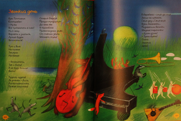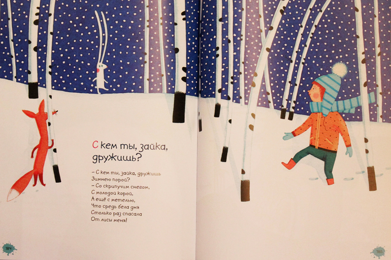 Сам по себе сборник получился отличный, если не брать во внимание иллюстрации к стихам Заходера и при условии, что вы нормально относитесь к мелованной бумаге. Кстати блики в основном обращают на себя внимание именно на иллюстрациях Е. Силиной. И еще один минус про который нельзя не упомянуть - это запах типографской краски. В первый день после покупки был невыносимый, с каждым днем все меньше и меньше. Так что будьте готовы к тому, что книгу перед прочтением придется неделю выветривать.