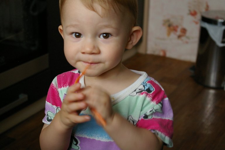 - ест самостоятельно, но выборочно. Но пытается активно. Суп и кашу ему тяжело, а творог, например, ест сам. Пьет из трубочки (хотя конечно так наверно все умеют)..