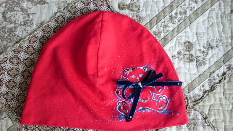 6. Красная трикотажная шапочка с мишкой от Гелы. Размер 46-47 см. Состояние идеальное! Цена 400 руб.