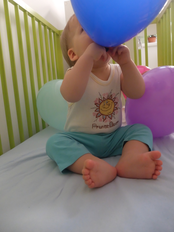И вдруг я отвлеклась от мытья посуды, обернулась на восторженный возглас сына и увидела, что он стоит, держась за ножку стула. Он встал. Самостоятельно встал. И ему уже семь с половиной месяцев. Он по - хозяйски ползает по всей квартире, осмотрительно засовывая в рот то, что нельзя, только если думает, что я не слежу. Он заливисто смеется, если у него выходит осуществить задуманное и обиженно плачет, если нет.