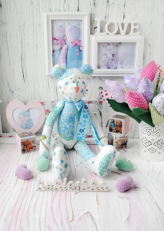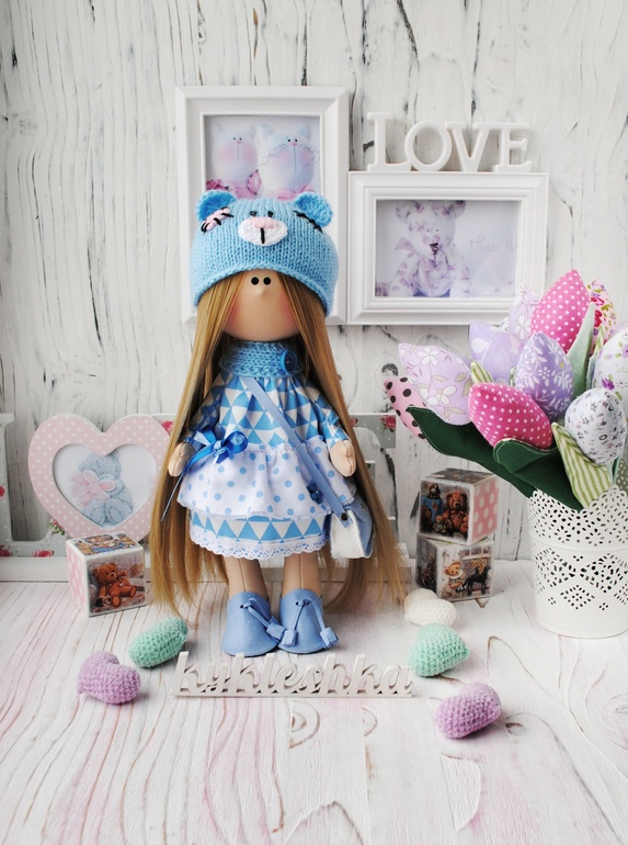Потянуло меня что-то на голубой)) кукла ростом 30 см. Стоит и сидит сама.