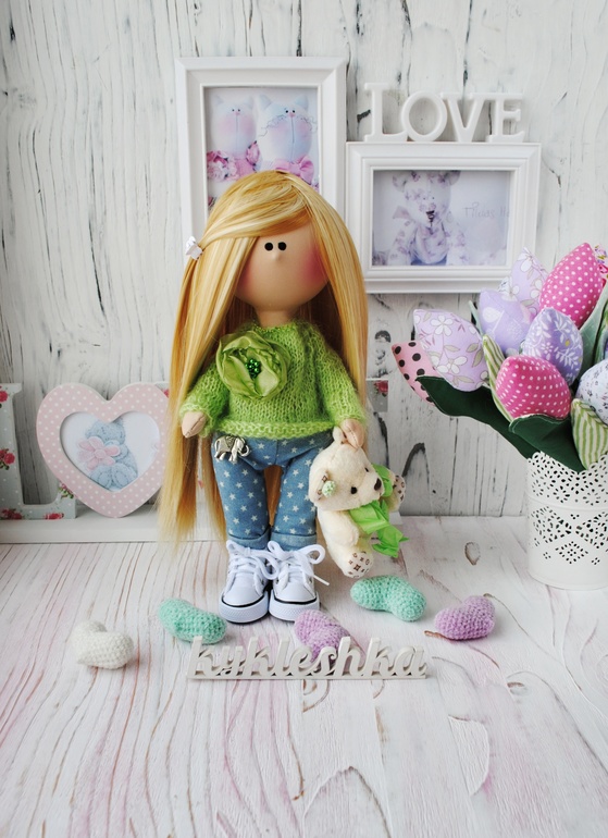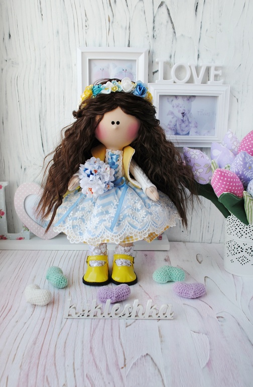 Уже совсем скоро весна! Даже не верится)) Вот такая девочка у меня новая, весенняя. Рост 30 см. Сама стоит. Одета в гипюровые колготочки, фатиновую юбку пачку. Волосы можно расчесывать. Много фото
