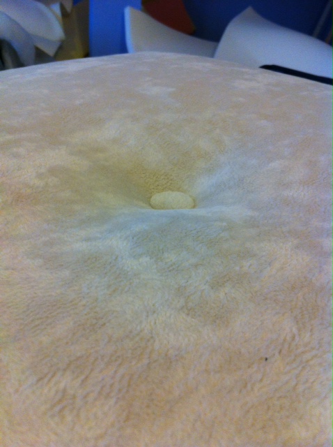 Делаем сквозные отверстия для утяжки пуговицами. Сверху накладываем слой синтипона.