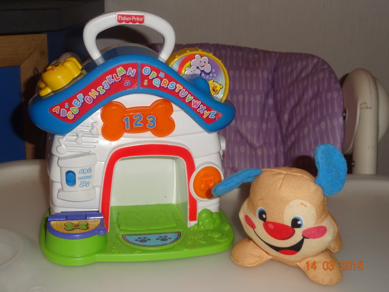 2) Продам развивающую игрушку - музыкальный домик с собачкой Fisher-Price. Собачка мягкая и является погремушкой. Сам домик имеет три режима. Первый - обучающий на английском языке, песенки, алфавит. Второй - обучение числам и разным фразам. Третий - музыкальный. Вращается солнышко и при этом много музыки и высказываний, нажимается косточка, кнопочки музыкальные, открывающаяся миска с едой.