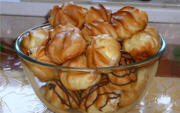 Готовые профитроли с заварным кремом охладим и можем пить чай!