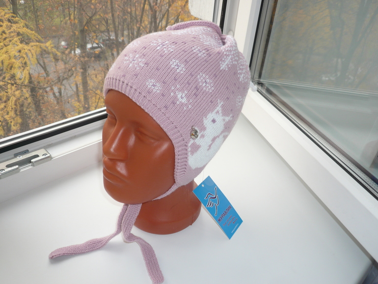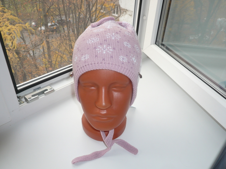 Двойная, теплая шапочка для девочки. По боках висячки с камушками.
