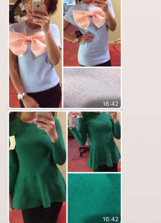 Дв! Юбка с блузкой 5000, костюм спортивный черный 4500, можно по отдельности верх-2500, низ-2000(на запахе), серый свитерок (ангора) 3300, с бантом нет. Размеры ваши есть