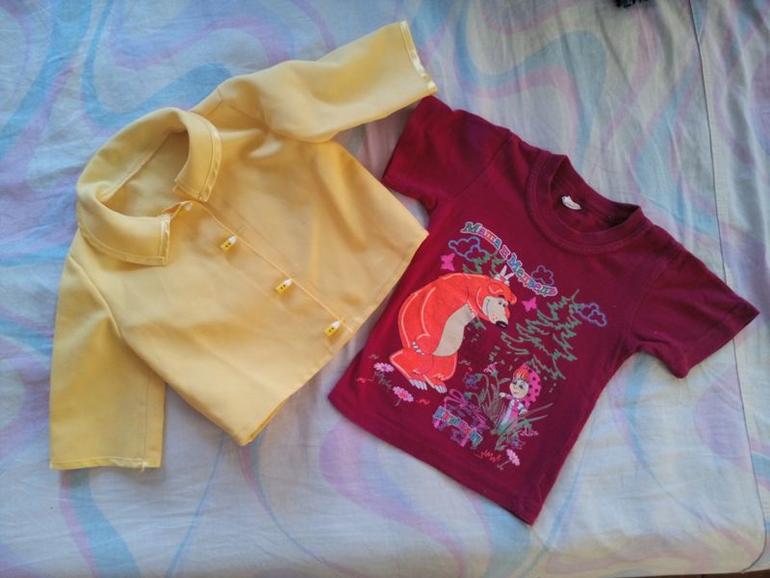 10. Желтая накидочка, размер 74 - 50 руб. и хлопковая футболка, размер 74 - 50 руб.