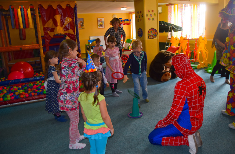 Развлекать детей я пригласила аниматоров: Клоуна и Человека Паука. Забегая вперед скажу, что на час программы, которая была у аниматоров детей не хватило, максимум на 35-40 минут. Лично мне больше понравился Клоун, особенно его зажигательный смех.