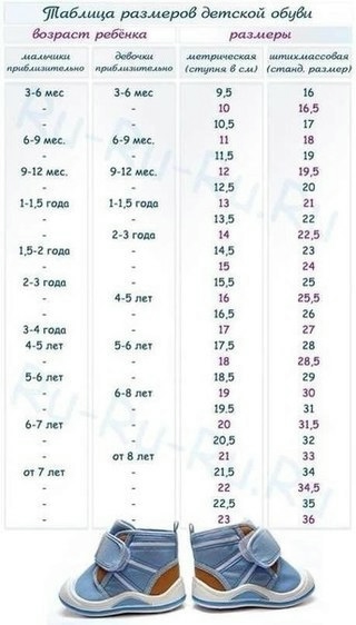 p.s. врачи рекомендуют детям в возрасте 2-3 лет менять обувь на большую как минимум 2-3 раза в год, а 3-6 летним - минимум 2 раза в год. Поэтому при измерении размера ножки результат следует увеличивать в большую сторону на 1 размер.