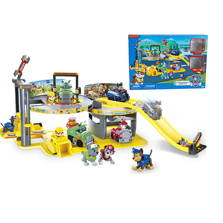 12. Парковка-трек Премиум. 2000 рублей. В комплекте Чейз и Маршал (машинки как в №2). Большой гараж, 3 спуска, парковочное место для вертолетика (вращается на 360 градусов), эстакада, гараж так же вращается, и второй этаж трека может служить крышей для гаража. Самый многофункциональный трек.
