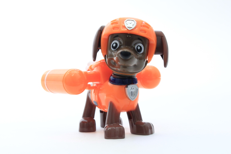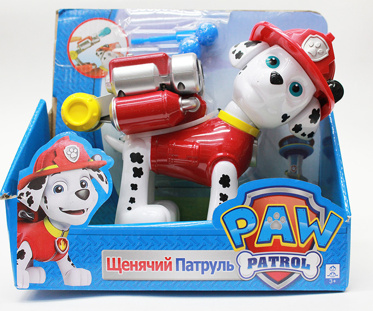 Размеры игрушки - примерно 20 см в длину и высоту. Достаточно большая игрушка. В комплекте к ним идут снаряды, которые вставляются в рюкзак и при нажатии на кнопку, они выстреливают. У Маршала - 2 снаряда, у Чейза - 1 снаряд.
